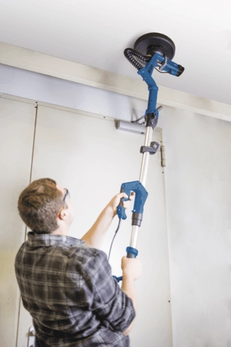 - – La ponceuse DS930 Scheppach permet de poncer les murs et les plafonds.