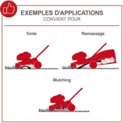 Moteur a essence puissant de 161 cm3 a 4 temps, 46 cm de largeur de tonte. Bac de ramassage de 55L avec indicateur de remplissage. Éjection latérale et arriere, fonction de mulching permettant d’obtenir un résultat professionnel. Réglage de hauteur centralisé ajustable a 7 positions. Fonction de lavage intégrée.